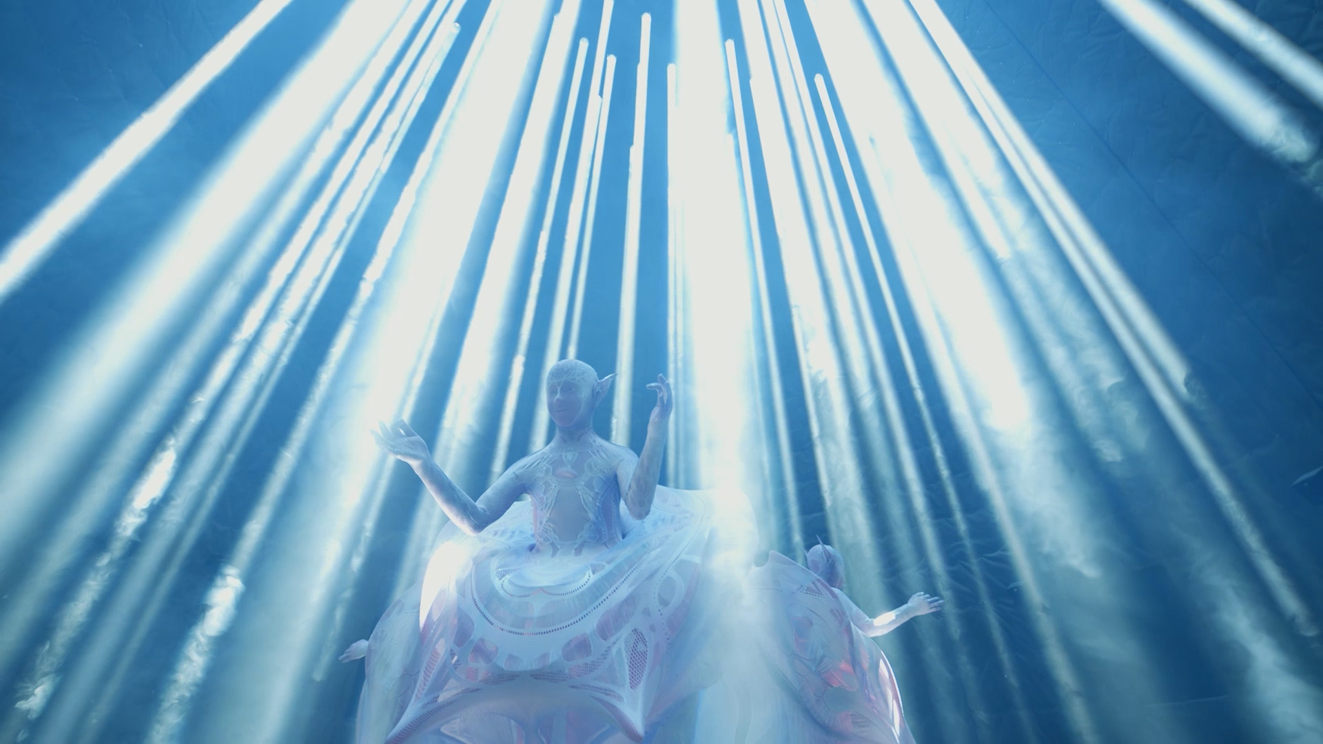 たくさん印象に残っていることはあるのですが、最も多く議論したのは、ZONE2「50年後の未来」において、どういった形の展示をするかという点でした。シーンの展開方法、プロジェクターやロボットの配置など、何度も何度もメンバー全員で検討を重ねました。結果として、当初の構想とは大きく異なる形になりましたが、本当に素晴らしいものに仕上がったと思います。また、ZONE3 「1000年後のいのち”まほろば”」では、ダイナミックな動きをする新しいアンドロイドに対し皮膚をどう付けるか、その上にどのような衣装を着せるか、どのように配置し、動きや照明をどう演出するかなど、非常に深い議論を重ねました。これらの過程の中でひとりひとりのアーティストやクリエイターのこだわりがうまく融合したことで、印象深いシーンをつくり上げることができたと感じます。個別のエピソードを挙げるのが難しいほど多くのやりとりや議論がありましたが、みんなで一緒につくり上げてきた過程そのものが、強く印象に残っています。